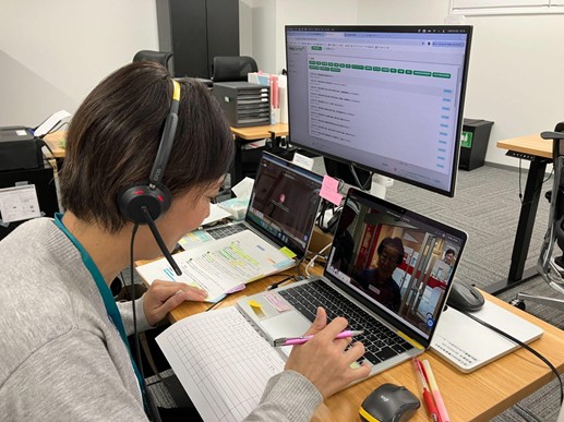 fig4:オペレーションルームにて、オペレーターが2台のnewmeを遠隔から案内する様子