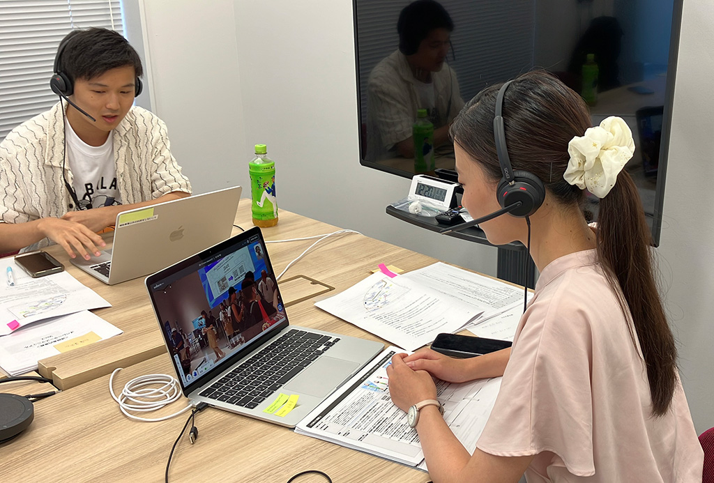 初日は、愛知県内の施設「STATION Ai」から名古屋外国語大学国際教養学科の学生たちが遠隔案内を行うオペレーターとして参加しました。遠隔操作や接客といった初めての業務にも関わらず、学生たちは持ち前の語学力を活かし、状況に応じて柔軟に対応していました。短時間で操作のコツを掴み、来場者に積極的な声かけを行うなど、臨機応変に対応している姿は、まさに、技術や環境の変化に適応しながら、ロボットと共に社会を支える力を体現しているようでした。